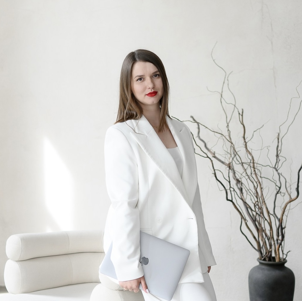 Диплом магістра права «з відзнакою» отримала в Національній академії внутрішніх справ у 2017 році. Практикую у сфері юриспруденції з 2016 року. Свідоцтво про право на заняття адвокатською діяльністю отримала в березні 2020 року.